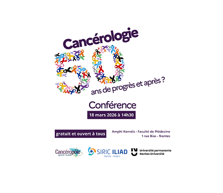 A l’occasion des 50 ans de l’université permanente de Nantes Université, le SIRIC ILIAD et le cancéropôle Grand Ouest organisent une conférence grand public sur la question : "Cancérologie : 50 ans de progrès, et après ?", le 18 mars 2026 à 14h30 à la Faculté de médecine de Nantes.
