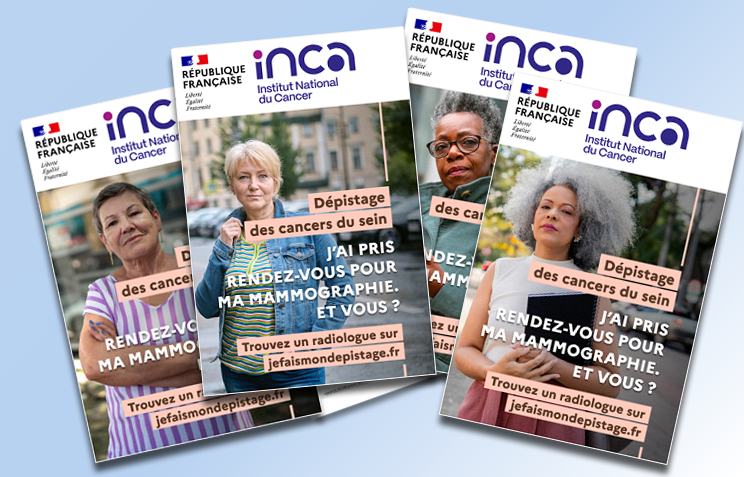 À l’occasion du mois de mobilisation contre les cancers du sein en octobre, l’Institut national du cancer poursuit l’information des femmes sur ce dépistage. Il diffuse dès mi-septembre, et jusqu’à la fin de l’année, une nouvelle campagne 100% digitale et en affichage dynamique dans les maisons de santé. Portée par 5 portraits de femmes, cette campagne oriente vers une information complète. Sa signature : "J’ai pris rendez-vous pour ma mammographie. Et vous ? Trouvez un radiologue sur jefaismondepistage.fr" rappelle la nouvelle fonctionnalité proposée aux femmes pour une prise de rendez-vous facilitée, et les incite à l’action.